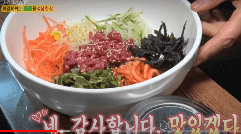 - 한우 생고기 비빔밥을 10,000원 내고 먹으면서 메뉴가 매일 바뀌어 다시 나가고 싶은 *고객들의 호평*을 받는다.